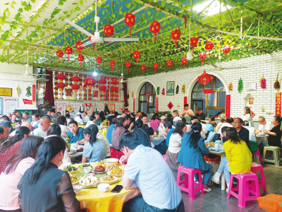 “上午游覽完太行洪谷和紅色體驗(yàn)基地,中午專程慕名到他家吃銅火鍋。你看這兒,吃火鍋連風(fēng)扇都不用開(kāi),而且食材地道,味道正宗,吃著過(guò)癮?!睅襾?lái)南陽(yáng)村游玩的晉城市民趙先生一邊大快朵頤,一邊美滋滋地說(shuō)。