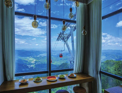 葛仙村度假區(qū)的美食一定不能錯(cuò)過(guò),來(lái)到二樓的云端餐廳,透過(guò)180度全景落地玻璃,可以將葛仙村的美景一覽無(wú)余,原木色餐桌搭配星空頂,臨坐在窗前,品嘗各色美食補(bǔ)充能量,與家人或朋友把酒言歡,享受味蕾上的滿(mǎn)足感。