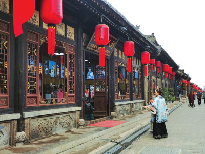 10月18日,秋雨綿綿,古城里依然游人如織,有持傘漫步欣賞古城美景的,有在街旁特色飯店品嘗美食的,還有在小酒館休閑放松的……不過(guò),最引人注目的還是景區(qū)內(nèi)十步一間的“旅拍”店,以及隨處可見(jiàn)的“晉商少奶奶”“晉商大小姐”,她們像一道耀眼的風(fēng)景,在明清古建的映襯下,讓游客瞬間有穿越的感覺(jué)。