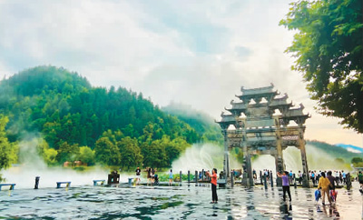 西遞景區(qū)牌樓廣場雨后美景。西遞鎮(zhèn)政府供圖