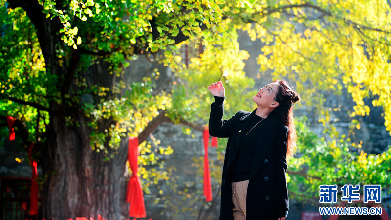 近日,佇立在湖北襄陽廣德寺內(nèi)的銀杏古樹迎來最佳觀賞期,吸引了眾多游客前來拍照打卡。 楊瀟攝 新華網(wǎng)發(fā)