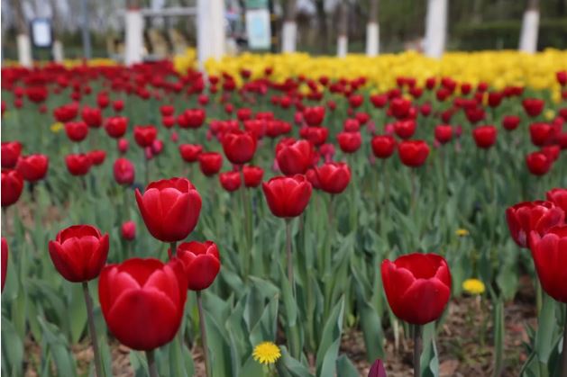 ▲晉陽湖公園百萬余株郁金香進(jìn)入最佳觀賞期