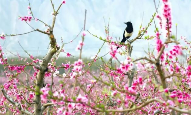 芮城的春天,綿延的山頭也悄然綻放出了生命的色彩。一簇簇、一樹樹的杏花,如同精心編排的舞蹈,在山谷間輕盈地蔓延開來。大片桃花林也如約而至,桃花競相綻放,將整個(gè)田地裝點(diǎn)得如詩如畫。粉嫩的桃花在枝頭搖曳生姿,花瓣輕輕舒展,散發(fā)出淡淡的香氣,吸引了無數(shù)蜜蜂和蝴蝶在花間翩翩起舞。