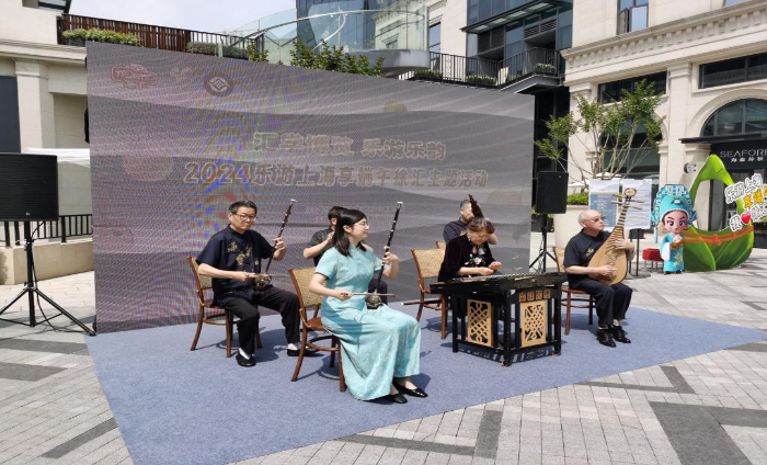 6月8日,非遺項(xiàng)目江南絲竹亮相上海市徐匯區(qū)衡山路8號(hào)廣場(chǎng)空間。新華社記者 陳愛(ài)平 攝