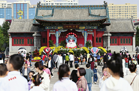 省城不少市民也選擇了“家門口的旅游”,國慶假期也是踏園賞菊的好時節(jié),太原市第三十四屆菊花展的主會場——雙塔公園,打造了7000平方米的賞花區(qū),10余萬株各類菊花競相開放。走進雙塔公園,首先映入眼簾的是色彩斑斕的菊花展,公園內(nèi)精心布置的“祝福祖國”、“錦繡梨園”等主題花壇,仿佛將秋天的色彩搬到了這里,為豐富展覽內(nèi)容形式,公園同時舉辦迎國慶剪紙文創(chuàng)展、中華姓氏家訓(xùn)家風(fēng)展、古裝花船游等活動,為廣大游客帶來豐富的游覽體驗。