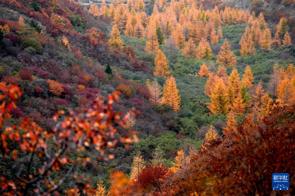 這是10月18日在寧夏固原市西吉縣大寨山林場拍攝的秋景。