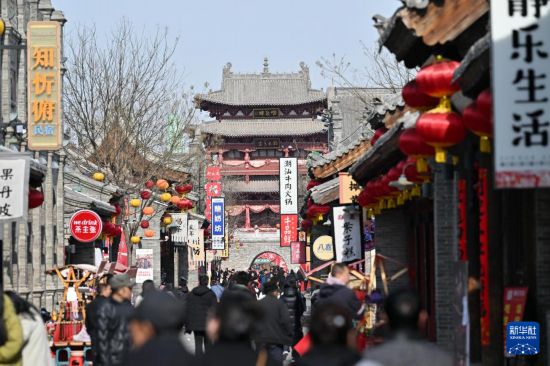 游人在忻州古城游覽。