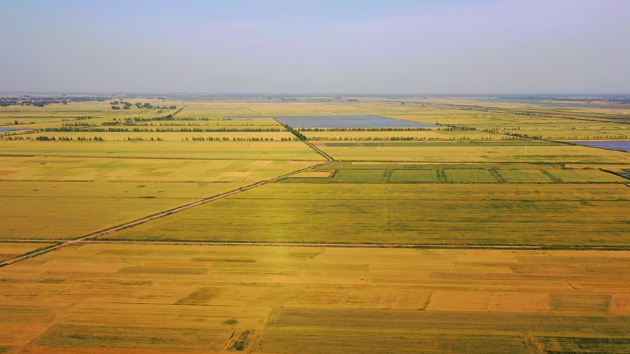 初夏時節(jié),安徽省潁上縣廣袤大地上麥香四溢。麥田在陽光下泛著金黃,麥浪滾滾,收獲在望。麥田、村落、河流、阡陌構(gòu)成一幅美麗的田園風光。(徐紅梅)??