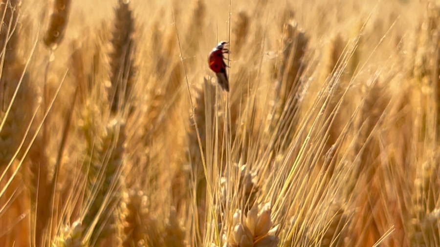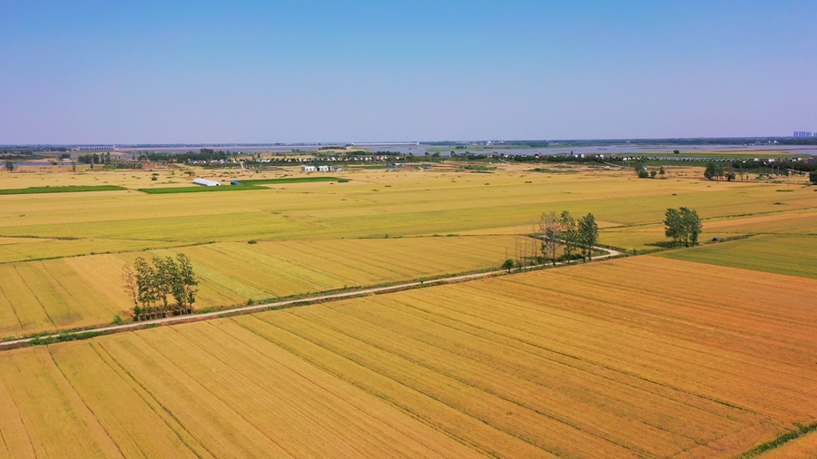 初夏時節(jié),安徽省潁上縣廣袤大地上麥香四溢。麥田在陽光下泛著金黃,麥浪滾滾,收獲在望。麥田、村落、河流、阡陌構(gòu)成一幅美麗的田園風光。?