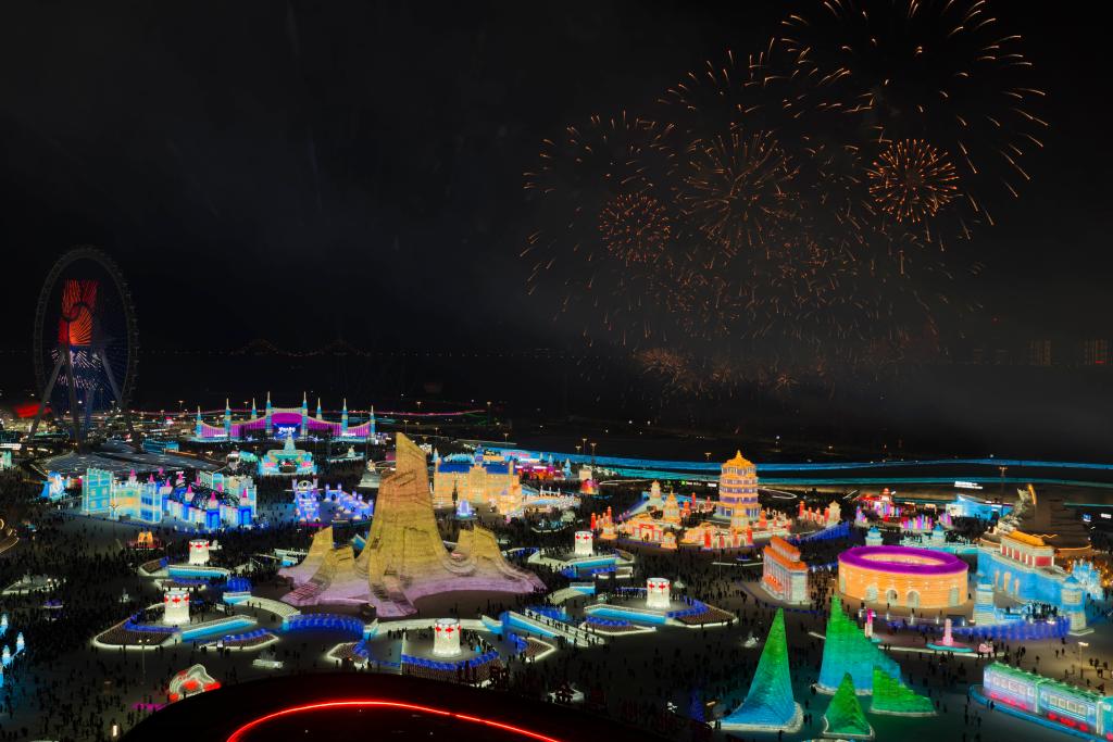 1月5日17時許,松花江北岸,夜空被璀璨的煙火點亮。在零下十幾攝氏度的嚴寒中,第42屆中國·哈爾濱國際冰雪節(jié)在哈爾濱冰雪大世界啟幕!