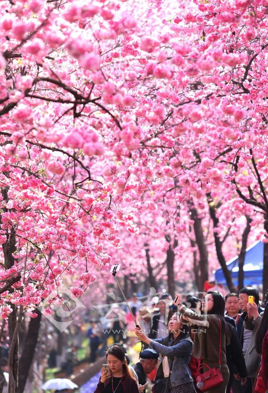 3月13日,昆明圓通動物園人潮涌動,數(shù)千株櫻花和海棠進入盛花期,吸引大批游客前來賞花觀景。