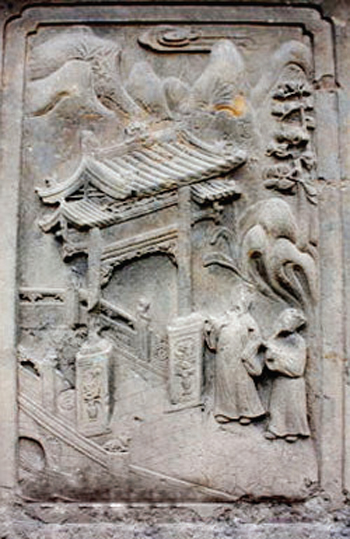 配坊實(shí)際上是一座功名石牌坊,上面刊載著武訪疇一家四代人的姓名及朝廷贈(zèng)封的官爵,咸豐六年(1856)由武訪疇修建。這座石雕牌坊與其它牌坊最大的區(qū)別就是沒(méi)有題刻坊名,因此只能稱之為配坊。坐北向南,為四柱三間三樓單檐歇山頂結(jié)構(gòu),牌樓高8米,寬12米,坊體坐落在近1米高的長(zhǎng)方形臺(tái)基上,立柱仍然采用夾柱石固定。坊頂覆蓋青瓦,正脊飾石雕貔貅裝飾,飛檐翹角,明樓檐下為“圣旨”牌,當(dāng)心間設(shè)兩層小字板,第一層題刻:“贈(zèng)資政大夫曾祖父廷桂,贈(zèng)夫人曾祖母李氏;誥贈(zèng)資政大夫祖父秉壁,誥贈(zèng)夫人祖母吳氏;誥贈(zèng)資政大夫父烈,誥封夫人母朱氏。陜西分巡延榆綏兵備道、加四級(jí)武訪疇謹(jǐn)建。”第二層題刻“大清咸豐六年歲次丙辰仲夏上院榖旦”。武訪疇借建坊要弘揚(yáng)祖輩陰德,而祖輩的姓氏大名又不能題刻在母親的節(jié)孝牌坊上,所以,他必須另建一坊才能完整地表達(dá)心愿。實(shí)際上,這就是建造配坊的真正目的。也正因此在配坊題刻“龍光錫寵”、“鳳詔褒榮”、“克成先志”、“重裕后昆”等。