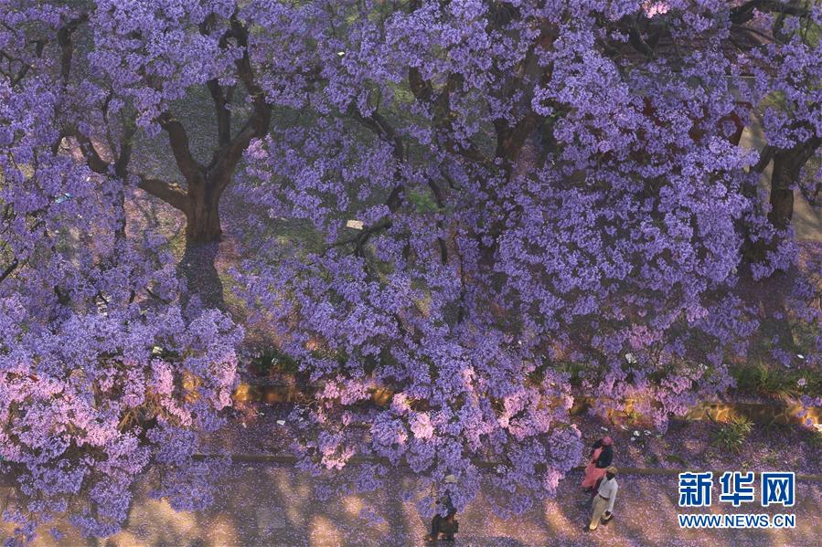 在津巴布韋首都哈拉雷,隨處盛開的藍(lán)花楹成為靚麗的風(fēng)景(10月2日攝)。 近日,位于非洲南部的津巴布韋進(jìn)入春季,全國(guó)各地的藍(lán)花楹紛紛盛開。津巴布韋風(fēng)光秀麗,擁有維多利亞瀑布、大津巴布韋遺址等5處世界自然或文化遺產(chǎn)。首都哈拉雷有多處神奇的平衡石景觀,同時(shí)也因出色的園藝被稱為非洲“花城”。新華社發(fā)(陳雅琴攝)