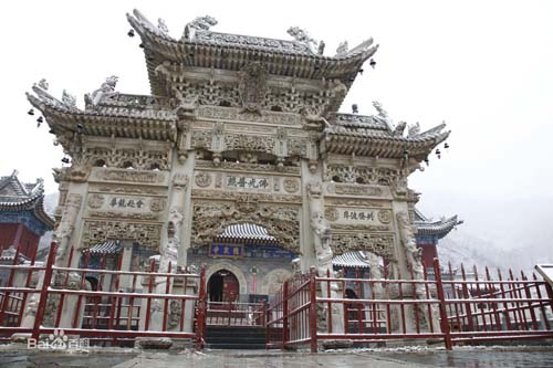 在五臺(tái)山的寺廟群中,有一座由家廟改成的佛教寺廟。這座寺廟山門前的石牌樓雕刻精美,很有名氣。它就是著名的龍泉寺,位于東溝北的山嶺下。