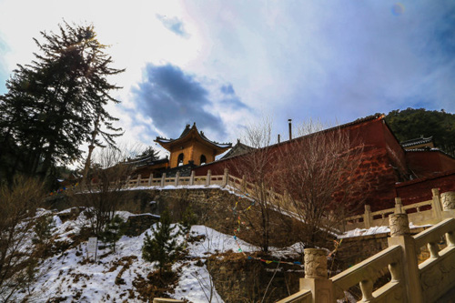 鎮(zhèn)海寺位于山西省忻州市五臺縣臺懷鎮(zhèn)南清水河西側(cè),距臺懷鎮(zhèn)5公里。坐落在“二龍戲珠”的風水寶地,左右兩側(cè)環(huán)繞的山峰,猶如兩條飛龍落下河谷,拱背彎腰,騰挪圍抱;寺院建筑在兩山合抱的一個石山嘴上,宛若一顆二龍嬉戲的寶珠。山豁口有蒼老挺拔的大松樹,走在松樹林間的蹊徑,再聽颯颯的松風,給人一促靜寞幽深的感覺。入寺四望,南側(cè)的山峰,長滿密密麻麻的杉樹和楊樹,北側(cè)的山巔上,千年古松出于(山免)巖石之中。這里是五臺山的一處風景區(qū),濃蔭蒼翠的古松掩映山寺,在五臺寺廟區(qū)還是少見的。