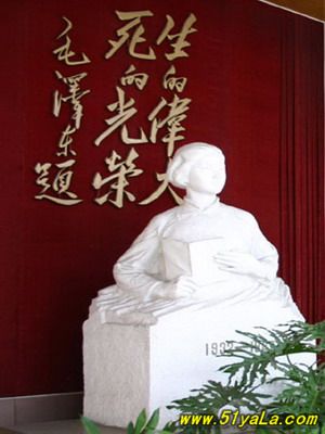 劉胡蘭(1930-1947),中國共產(chǎn)黨黨員,1946年參加革命,1947年山西軍閥閻錫山的軍隊突然襲擊時被捕,英勇不屈,在敵人鍘刀下壯烈犧牲。毛澤東曾在當時《晉綏日報》上為之題詞:“生的偉大,死的光榮?!?/p>