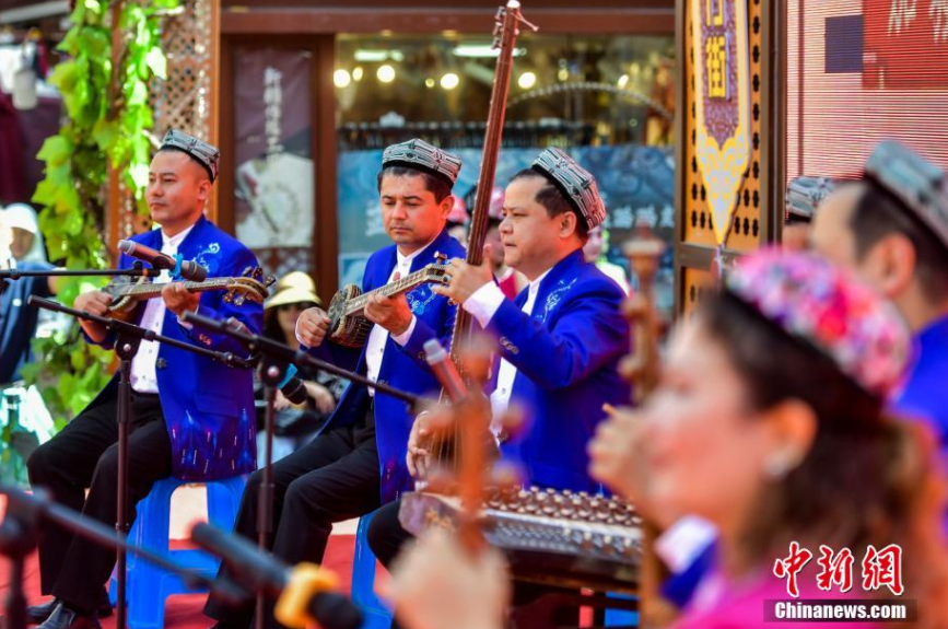 新疆藝術(shù)劇院木卡姆藝術(shù)團(tuán)樂隊奉上樂器聯(lián)奏《多彩新疆》。劉新 攝