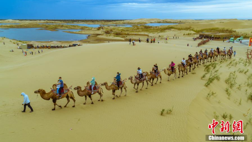 新疆國際大巴扎景區(qū),游客在地方特色建筑前參觀游覽。劉新 攝