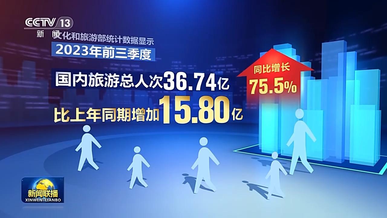 文化和旅游部統計數據顯示,2023年前三季度,國內旅游總人次36.74億,比上年同期增加15.80億,同比增長75.5%。2023年前三季度,居民國內出游總花費3.69萬億元,比上年增加1.97萬億元,增長114.4%。預計在今年12月至明年春節(jié)期間,冰雪游、出入境旅游等消費將迎來新高。