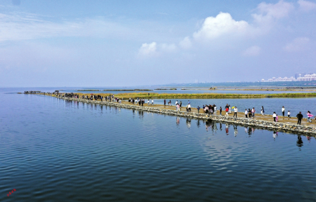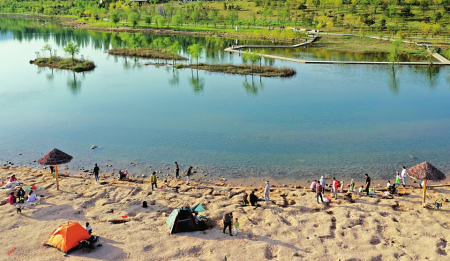 太原市汾河四期,游人享受海濱的感覺(jué)。
