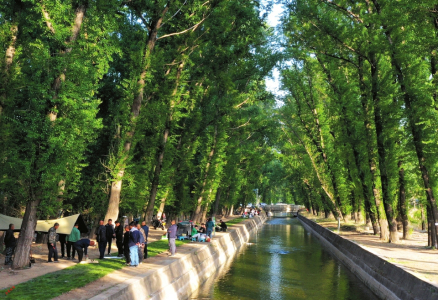 太原市西干渠,市民搭起帳篷喝茶吃燒烤,享受假日時(shí)光。