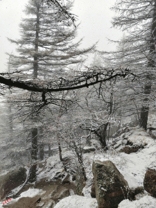 5月5日恰逢立夏節(jié)氣,寧武縣蘆芽山迎來了一場突如其來的降雪,仿佛時(shí)光倒流。潔白的雪花與松樹相映成趣,構(gòu)成了一幅奇特而美麗的畫卷。