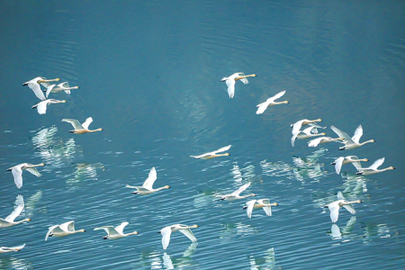 不只是桃河。近年來,在陽泉,龍華口水庫、平定縣二電廠調(diào)蓄水庫、尚怡水庫等河流匯集、水面寬廣的地方,經(jīng)常有天鵝、白鷺、鴛鴦、黑鸛、野鴨等各種野生鳥類出現(xiàn)。碧水長流,這些美麗的精靈逐水飛翔嬉戲,構(gòu)成一幅生機(jī)勃勃的春日畫卷。