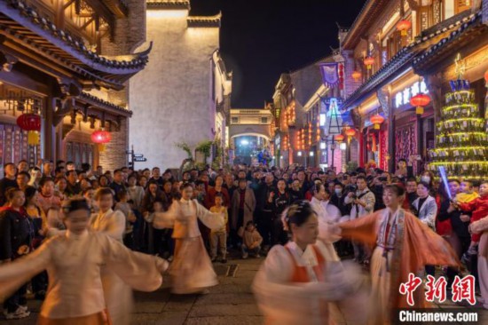 差異化定位下,洪江古商城以“商旅融合”破局:景區(qū)通過沉浸式夜游、非遺手作體驗(yàn)、國風(fēng)戲曲展演等多元業(yè)態(tài),吸引全國游客深度感受“千年商都”魅力。璀璨燈火映照下,這座起源于春秋、成形于盛唐、鼎盛于明清的商都,向各地游客再現(xiàn)一代代洪商演繹的商道傳奇,煥發(fā)出文旅融合新生機(jī)。