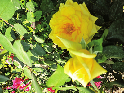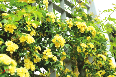 花廊。黃木香的單朵花雖小,但成千上萬(wàn)朵手牽著手簇?fù)碇_(kāi)放,整株植物像黃金鍛造的噴泉,金黃色花朵如水流般潺潺而下,如同春日的暖陽(yáng)帶給人舒服的感受。它不僅好看,湊近了還能聞到陣陣清香,不同于牡丹的濃香,也不同于桂花香帶著的甜膩,它的氣味淡雅清新,隨著輕風(fēng)飄散至各處。