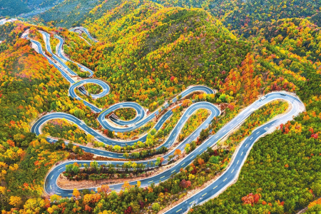 10月17日拍攝的左權(quán)縣太行龍泉風(fēng)景區(qū)景色。太行一號(hào)旅游公路北天池段,似長(zhǎng)龍盤(pán)旋在五彩斑斕的太行秋色之中,峰回路轉(zhuǎn),風(fēng)景秀麗,繪成一幅絕美的天然畫(huà)卷,帶領(lǐng)游客開(kāi)啟詩(shī)意之旅。