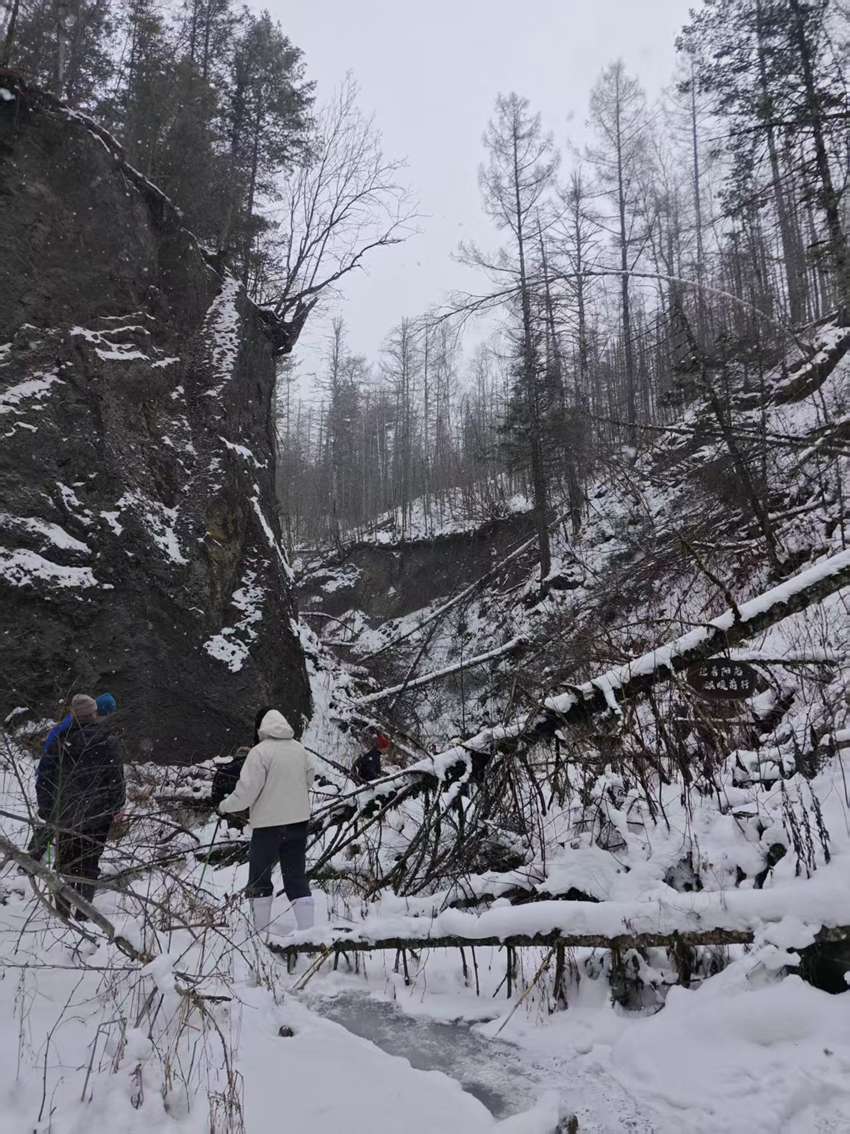 穿越途中,冰雪驚喜也從不缺席。清晨時(shí)分,峽谷內(nèi)常有霧凇奇景;若遇晴朗天氣,正午的陽光會(huì)讓積雪變得松軟,踩上去如同踏在棉絮上;傍晚時(shí)分,夕陽為石林鍍上暖金色,原本冷峻的峽谷瞬間變得溫柔起來。運(yùn)氣好時(shí),還能在穿越途中偶遇覓食的松鼠,它們在雪地上跳躍的身影,為這片靜謐的秘境增添了幾分生機(jī)。