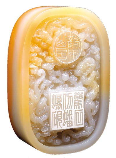壽山石是一種以主產地命名的名貴印石。位于福建省福州市晉安區(qū)的壽山村,自古就以出產好石材著稱。元、明之際,壽山石雕刻印章開始興起。壽山石章鈕飾題材十分廣泛,包括動物、人物、花果等,雕刻技法有圓雕、浮雕、淺浮雕以及陰刻等。