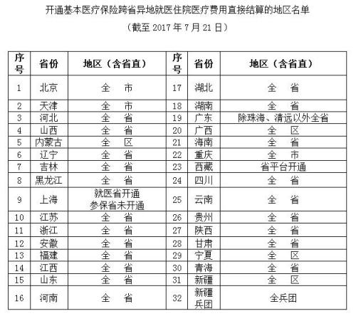 據(jù)人力資源和社會(huì)保障部網(wǎng)站消息,目前全國(guó)跨省異地就醫(yī)住院醫(yī)療費(fèi)用直接結(jié)算聯(lián)網(wǎng)接入工作順利推進(jìn)。截至7月21日,全國(guó)31省份和新疆生產(chǎn)建設(shè)兵團(tuán)均接入國(guó)家異地就醫(yī)結(jié)算系統(tǒng),開(kāi)通390個(gè)地區(qū),占97.5%。截至7月19日,開(kāi)通4055家跨省異地就醫(yī)住院醫(yī)療費(fèi)用直接結(jié)算定點(diǎn)醫(yī)療機(jī)構(gòu)。