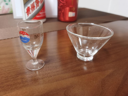 茅臺(tái)用茅臺(tái)的改良(瓶口外翻)烈酒杯,其實(shí)這個(gè)文化傳輸?shù)囊话?,高腳烈酒杯是西方傳來(lái)的,雖然被各種電視劇帶的大家以為也是中國(guó)特色,但實(shí)際上不是,包括用分酒器分酒我覺(jué)得也不是傳統(tǒng)的文化傳承,但人家NB人家有理,這條咱們就過(guò)了。這個(gè)紅色壹號(hào)買(mǎi)的時(shí)候也有送的這個(gè)酒盅,雖然也是玻璃不是老式的那種小瓷杯,但是這個(gè)意思對(duì)的,畢竟“盅”才是傳統(tǒng)文化里對(duì)酒比較正統(tǒng)的計(jì)量方式之一。茅臺(tái)的杯子應(yīng)該是標(biāo)準(zhǔn)五錢(qián),這個(gè)盅我目測(cè)得一兩。