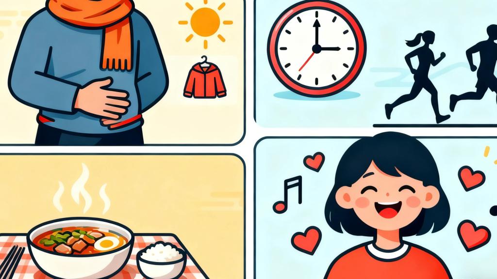 腹部保暖、三餐定時、規(guī)律作息、情緒管理是護胃“四大法寶”。AI繪圖??秋冬季如何打好“胃腸保護戰(zhàn)”?專家認為,首先是做好腹部保暖,及時增添衣物,尤其要避免腹部暴露在冷空氣中,不要長時間處于寒冷環(huán)境。其次,飲食要以溫熱易消化為主,盡量不吃生冷食物,三餐定時定量,減少腸道負擔。第三,規(guī)律作息,避免熬夜,結合適當體育鍛煉促進血液循環(huán),增強胃腸蠕動,提高身體的耐寒能力和免疫力,以此增強胃腸抵抗力。最后,焦慮和抑郁是胃腸疾病的“催化劑”,要學會釋放壓力,保持心情愉悅,不讓壞情緒“傷”胃。