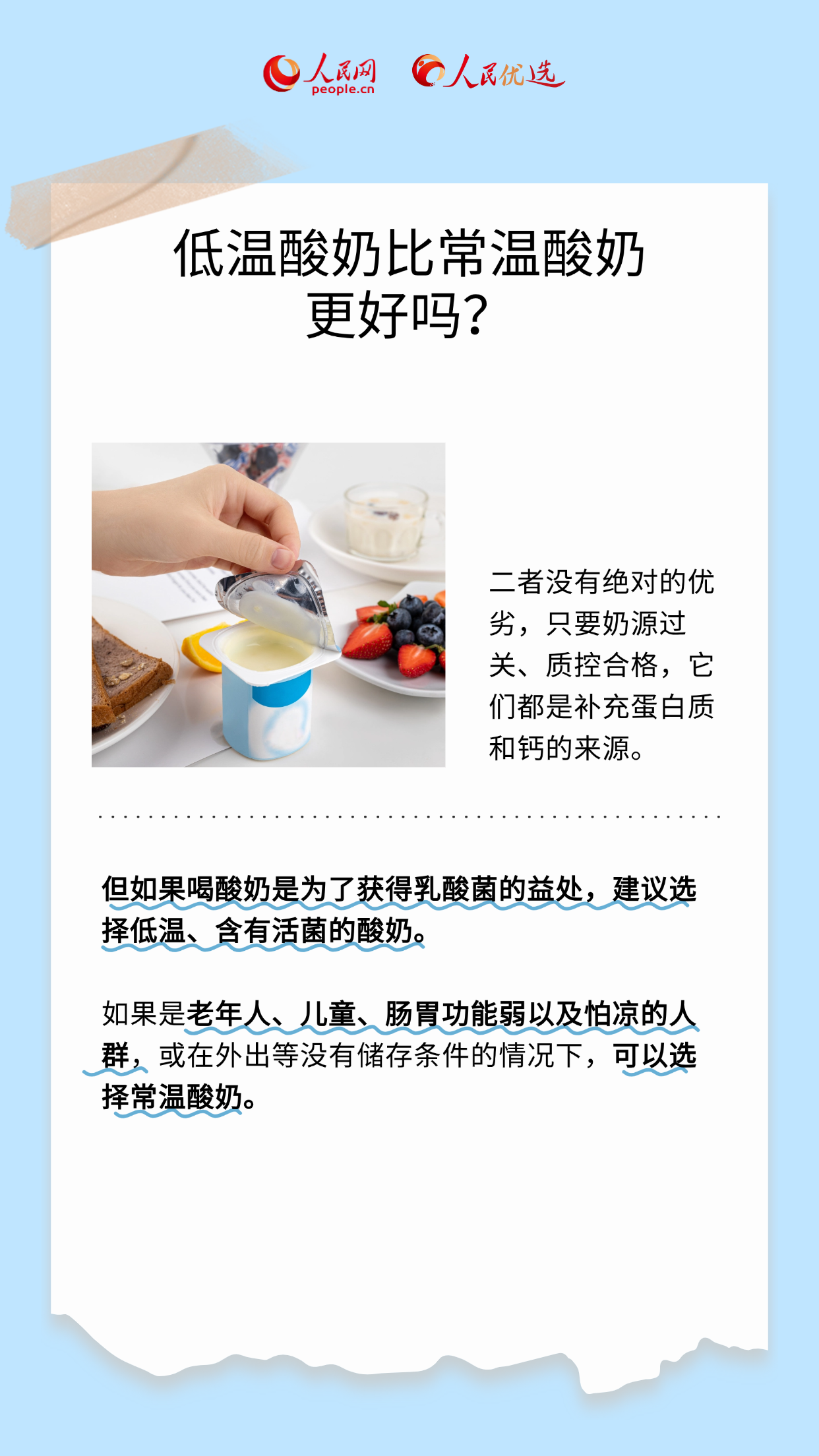 酸奶營養(yǎng)又美味,可面對市面上琳瑯滿目的產(chǎn)品,您是否也有這些疑問:酸奶主要分為哪些類型?成年人每日適合飲用多少?在選購時(shí)又該注意哪些方面?不少人,尤其是減肥人士,喜歡用酸奶代餐,但若想吃得健康,科學(xué)挑選與適量飲用必不可少。本期《人民優(yōu)選來了》將為您一一梳理,帶您解鎖酸奶的食用小知識,一起來看看吧!