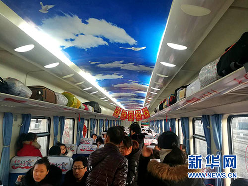 這是“蔡家崖”號列車車廂內(nèi)景(1月21日攝)。新華社記者 呂夢琦 攝