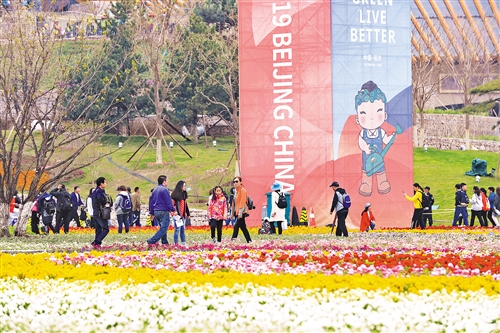 4月20日,世園會(huì)進(jìn)行全負(fù)荷壓力測試,參觀者在園區(qū)內(nèi)游覽。(北京世園局供圖)