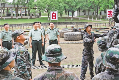 學(xué)院訓(xùn)練場上,學(xué)員們生龍活虎、喊聲震天,一派實(shí)戰(zhàn)化練兵景象。習(xí)近平走到障礙訓(xùn)練場旁,察看學(xué)員進(jìn)行障礙訓(xùn)練情況。極限訓(xùn)練對于錘煉學(xué)員體能極限、意志極限、心理極限,提高戰(zhàn)場適應(yīng)能力很有意義。習(xí)近平步行進(jìn)入極限訓(xùn)練場,詳細(xì)了解有關(guān)訓(xùn)練設(shè)施和訓(xùn)練情況。學(xué)員們進(jìn)行了阻絕墻跳水、翻越懶人梯、跨越步步高、翻越高墻、攀爬云梯、攀越高空蕩木橋、扛圓木等訓(xùn)練。看到學(xué)員們摸爬滾打一身泥水,迎著障礙一往無前,習(xí)近平很高興。