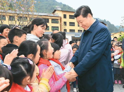 圖為四月十五日下午,習近平在重慶石柱土家族自治縣中益鄉(xiāng)小學同學生們親切交談,詢問他們學習和生活情況。新華社記者 謝環(huán)馳攝