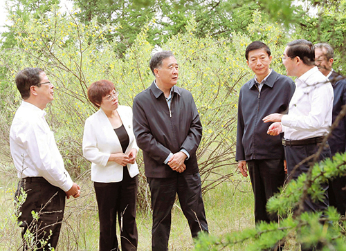 右玉縣位于毛烏素沙漠天然風口地帶,原本是風沙成患、山川貧瘠的“不毛之地”。新中國成立70年來,歷屆縣委堅持不懈帶領(lǐng)群眾防風固沙、植樹造林、改善生態(tài),創(chuàng)造了荒漠變綠洲的生態(tài)奇跡。2018年右玉縣成為山西省首批脫貧摘帽的國家級貧困縣之一,生態(tài)文明建設(shè)成為右玉打贏脫貧攻堅戰(zhàn)的關(guān)鍵舉措。4日至5日,汪洋先后來到右玉精神展覽館、南山森林公園豐碑、四五道嶺,考察植樹造林、水土保持、生態(tài)綜合治理情況。他還走進企業(yè)、學校和貧困戶,詳細了解產(chǎn)業(yè)扶貧、生態(tài)扶貧、教育扶貧等情況。