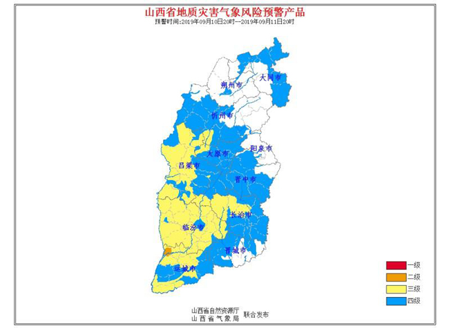 9月10日17時(shí)23分,山西省自然資源廳和山西省氣象局聯(lián)合發(fā)布地質(zhì)災(zāi)害氣象風(fēng)險(xiǎn)預(yù)警: