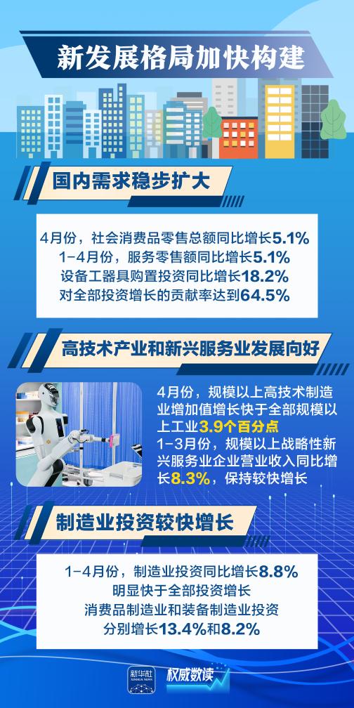 4月份經(jīng)濟(jì)數(shù)據(jù)陸續(xù)出爐,中國(guó)經(jīng)濟(jì)頂住壓力穩(wěn)定增長(zhǎng),延續(xù)向新向好發(fā)展態(tài)勢(shì)。