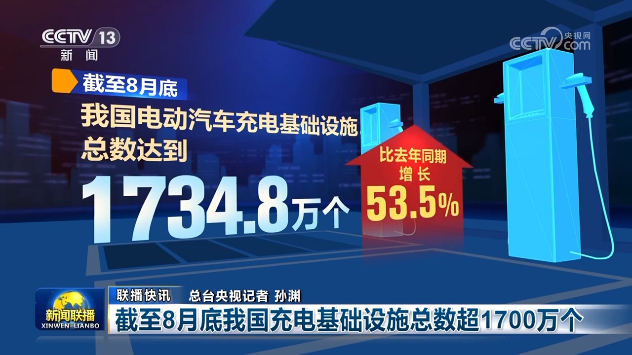 截至8月底我國充電基礎(chǔ)設(shè)施總數(shù)超1700萬個