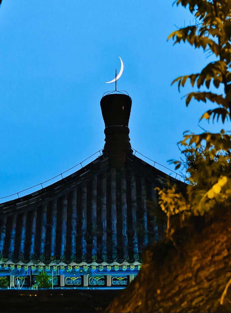 2024年8月7日,在北京北海公園拍攝的蛾眉月。(鐘奕 攝)