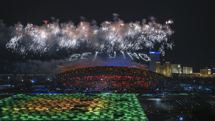 浪漫的焰火騰空而起,“北京2022”在國(guó)家體育場(chǎng)上空粲然綻放,時(shí)光的“留聲機(jī)”定格在大地上。