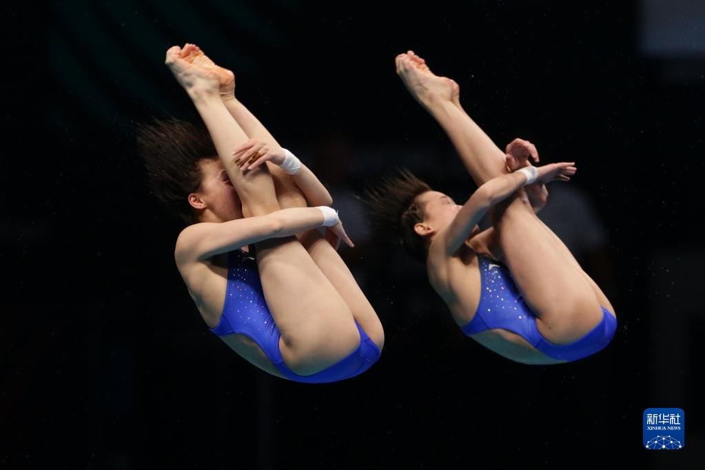 6月30日,陳芋汐(左)/全紅嬋在比賽中。當(dāng)日,在匈牙利布達(dá)佩斯舉行的2022年世界游泳錦標(biāo)賽跳水項(xiàng)目女子雙人10米臺(tái)決賽中,中國選手陳芋汐/全紅嬋奪得冠軍。新華社記者 鄭煥松 攝