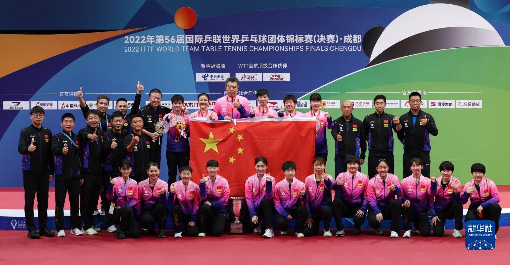 新華社成都10月8日電(記者陳地)8日晚,備受關(guān)注的2022年第56屆世界乒乓球團體錦標賽女團決賽上演,中國隊三名隊員陳夢、王曼昱、孫穎莎發(fā)揮出色,3:0完勝日本隊,幫助中國隊以八戰(zhàn)全勝的驕人戰(zhàn)績奪冠,并實現(xiàn)世乒賽五連冠。