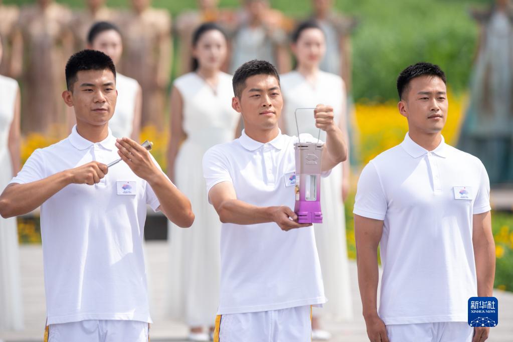 6月15日,火種護衛(wèi)將圣火引入火種燈并展示。新華社記者 江漢 攝