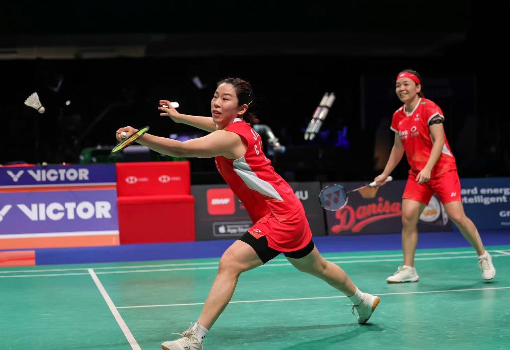 女雙世界排名第一的“凡塵組合”僅用時(shí)37分鐘,以兩個(gè)21:13戰(zhàn)勝中國(guó)臺(tái)北組合許雅晴/林琬清,晉級(jí)下一輪。